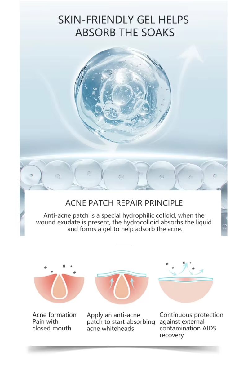 ClearCalm™ е вашето ефективно и нежно решение за намаляване на белите точки, докато спите. Изработен от висококачествен медицински хидроколоид без активни съставки, пластирът извлича замърсяванията и ускорява заздравяването, без да изсушава или дразни кожата ви. Независимо дали се сблъсквате с неочаквани обриви или искате да предотвратите образуването на белези от дразнене, този дискретен пластир се вписва безпроблемно във вашата рутина, през деня или през нощта.