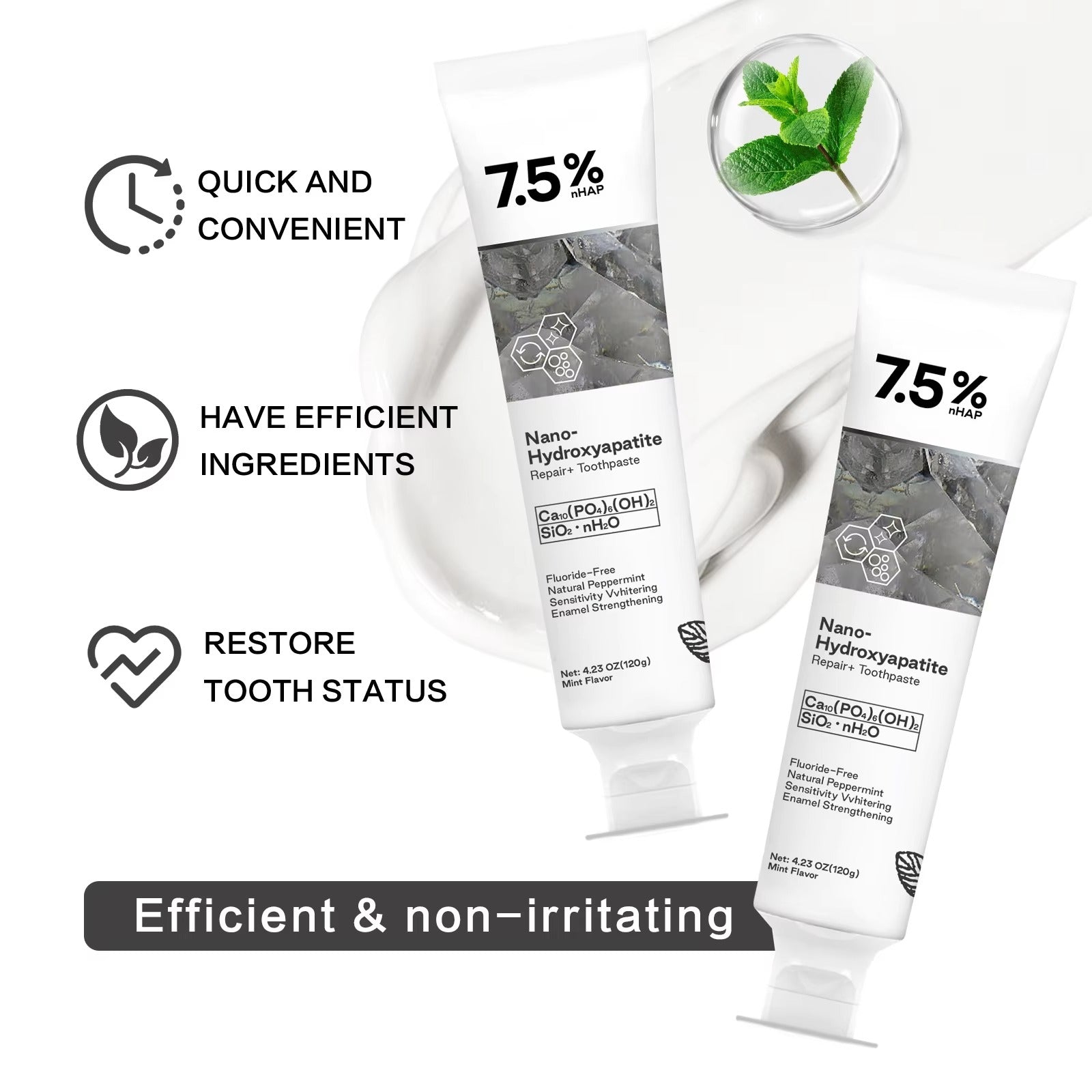 Το EnamelRebuild™ είναι μια οδοντόκρεμα χωρίς φθόριο, με νανο‑υδροξυαπατίτη, ειδικά σχεδιασμένη να επανορθώνει, ενισχύει και λευκαίνει φυσικά το σμάλτο των δοντιών. Με βιο-παρόμοια μέταλλα που δεσμεύονται στο υπάρχον δόντι, γεμίζει μικρορωγμές και αποκαθιστά τις φθαρμένες περιοχές, ενώ απομακρύνει απαλά τον αποχρωματισμό της επιφάνειας. Ασφαλής ακόμα κι αν καταποθεί, χωρίς σκληρές χημικές ουσίες ιδανική για ευαίσθητα δόντια.